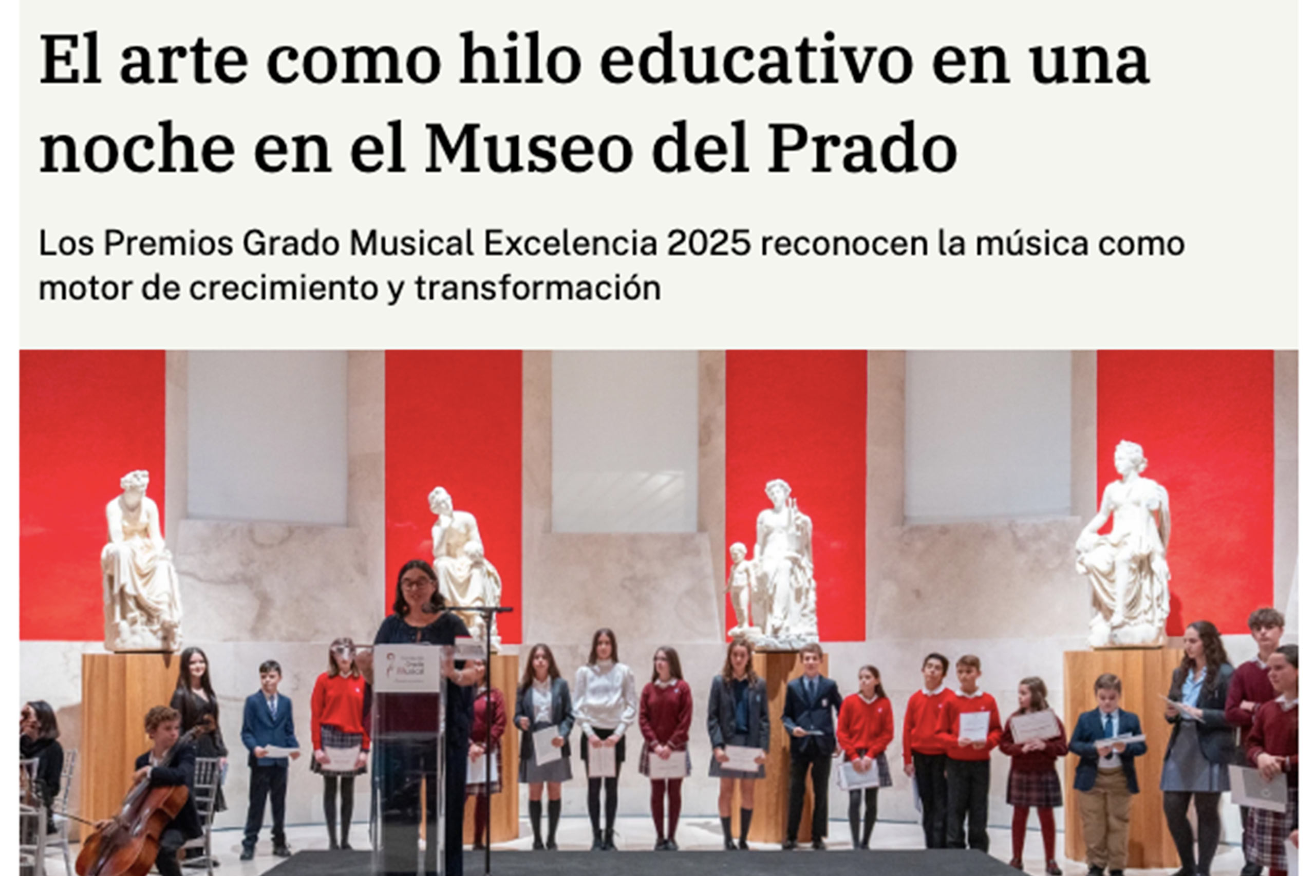 Muy agradecidos por el artículo en La Razón sobre la II Edición de los Premios Grado Musical Excelencia: «La ceremonia de los Premios Grado Musical Excelencia 2025. Un espacio idóneo para reforzar la idea central del certamen: que la educación musical de calidad desarrolla competencias técnicas y, además, ensancha la percepción, orienta la sensibilidad y fortalece la comprensión del mundo interior»